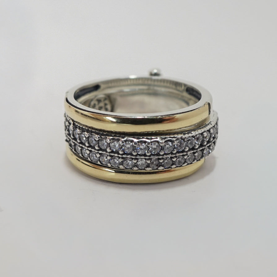 Use a polishing cloth to gently wipe silver and gold areas. For stains, use lightly diluted soap and warm water. Make sure to let it dry completely. Showering with 14K gold or 925 silver jewelry may eventually reduce the shine. We recommend polishing with a soft cloth every few months.