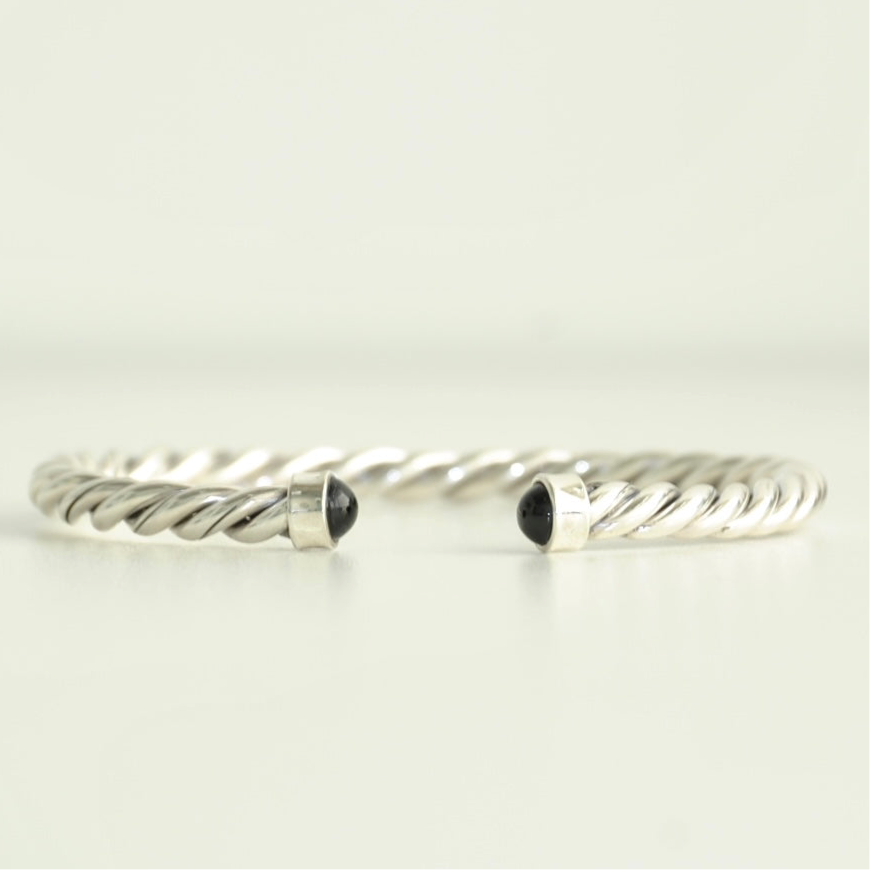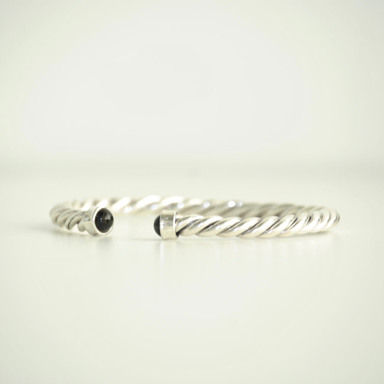 925 Sterling Silver with Onyx ends. Handle with delicacy.