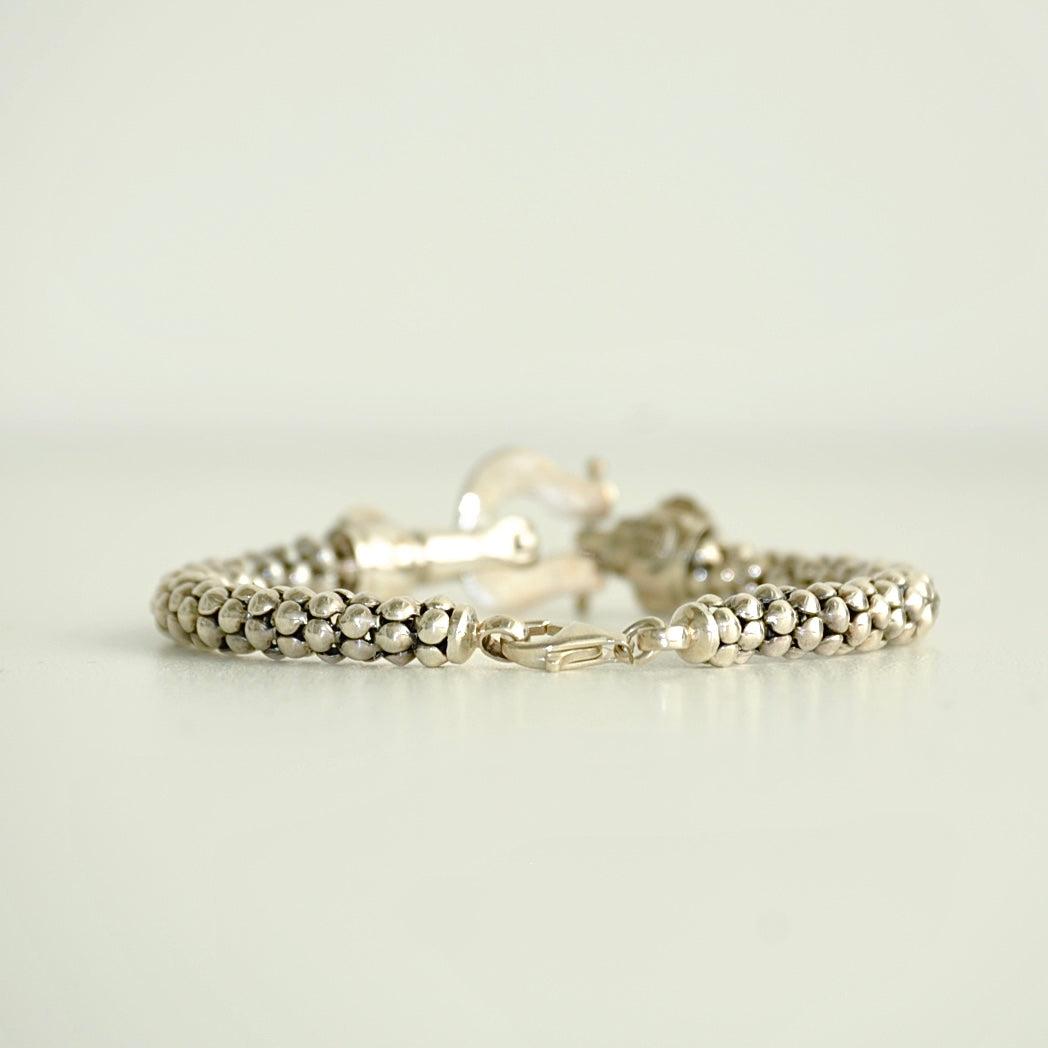 Use a polishing cloth to gently wipe silver and gold areas. For stains, use lightly diluted soap and warm water. Make sure to let it dry completely. Showering with 14K gold or 925 silver jewelry may eventually reduce the shine. We recommend polishing with a soft cloth every few months.