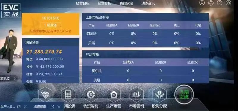 本次比赛使用“数智企业经营管理沙盘”作为比赛平台, 通过连续从事四个年度的模拟企业经营管理活动,团队4个人分别担任营销总监、生产总监、财务总监、人力资源总监,运用财务数据分析能力、计划预算能力、变化应对能力等去经营企业。