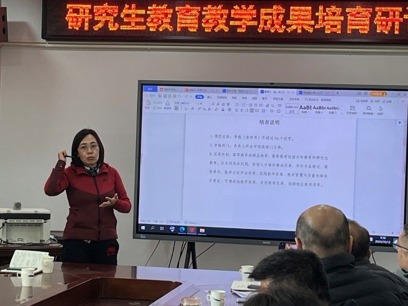 会议开始,于飞院长详细阐述了教育教学成果项目的申报条件、培育流程、评审标准以及注意事项,帮助与会教师更加清晰地了解项目培育的全过程和关键点。