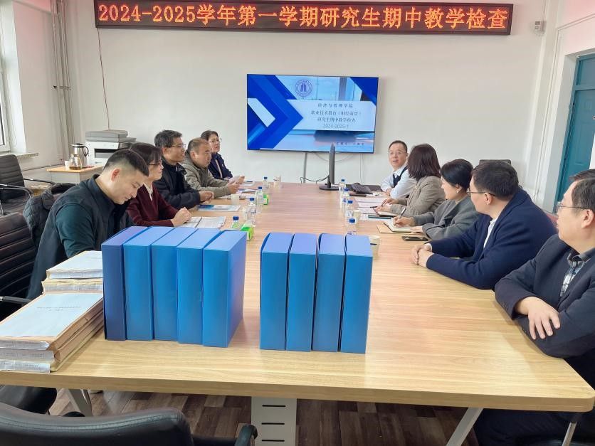为确保研究生培养质量,及时发现并解决研究生教学中存在的问题,按照研究生院的工作安排,yl88858永利集团于2024年11月15日下午1点,在第一教学楼515会议室开展2024-2025学年第一学期职业技术教育(财经商贸)研究生期中教学迎检工作。此次期中教学检查由研究生院陈春芳副院长、刘国成副院长、学位办公室主任周洪峰老师、培养科副科长李洪源老师、督导姜春红教授组成检查组入院检查,yl88858永利集团全体班子成员参加检查会,王海文副院长主持,研究生秘书和部分研究生代表共同参会。