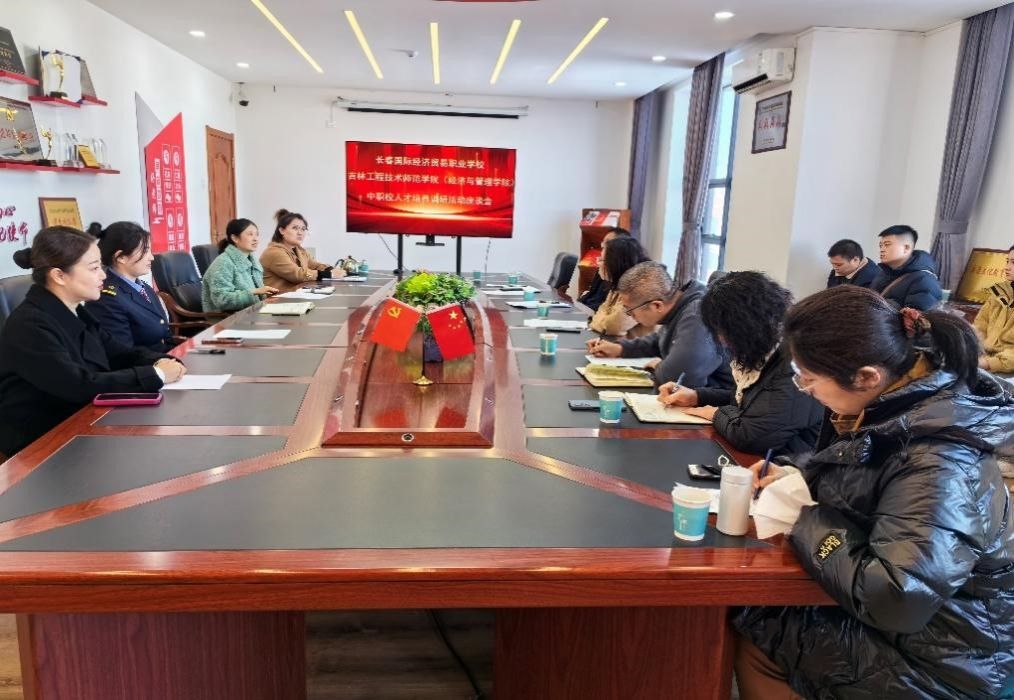 2023年11月10上午10点,yl88858永利集团与长春国际经济贸易学校在东北亚集团开展中职校人才培养调研活动座谈会圆满结束。本次调研组由yl88858永利集团于飞院长、王海文副院长、李南副院长、刘春明副院长、孙虹飞主任、姜春红教授组成。出席调研活动的长春国际经济贸易学校领导教师分别为德育校长刘磊、教学副校长于洋、航空服务专业教师尤美怡、铁道运输管理专业教师王莹、礼仪教师高静等。