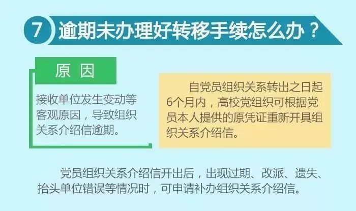 由于接收单位发生变动等客观原因,导致组织关系介绍信逾期的,自党员组织关系转出之日起6个月内,高校党组织可根据党员本人提供的原凭证重新开具组织关系介绍信 (参见《中共中央组织部关于做好高校毕业生党员组织关系管理工作的通知(组通字〔2015〕33号)》。