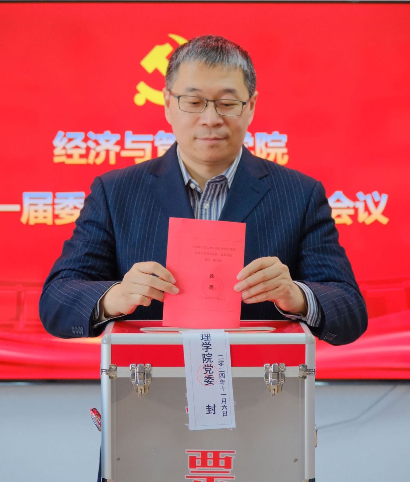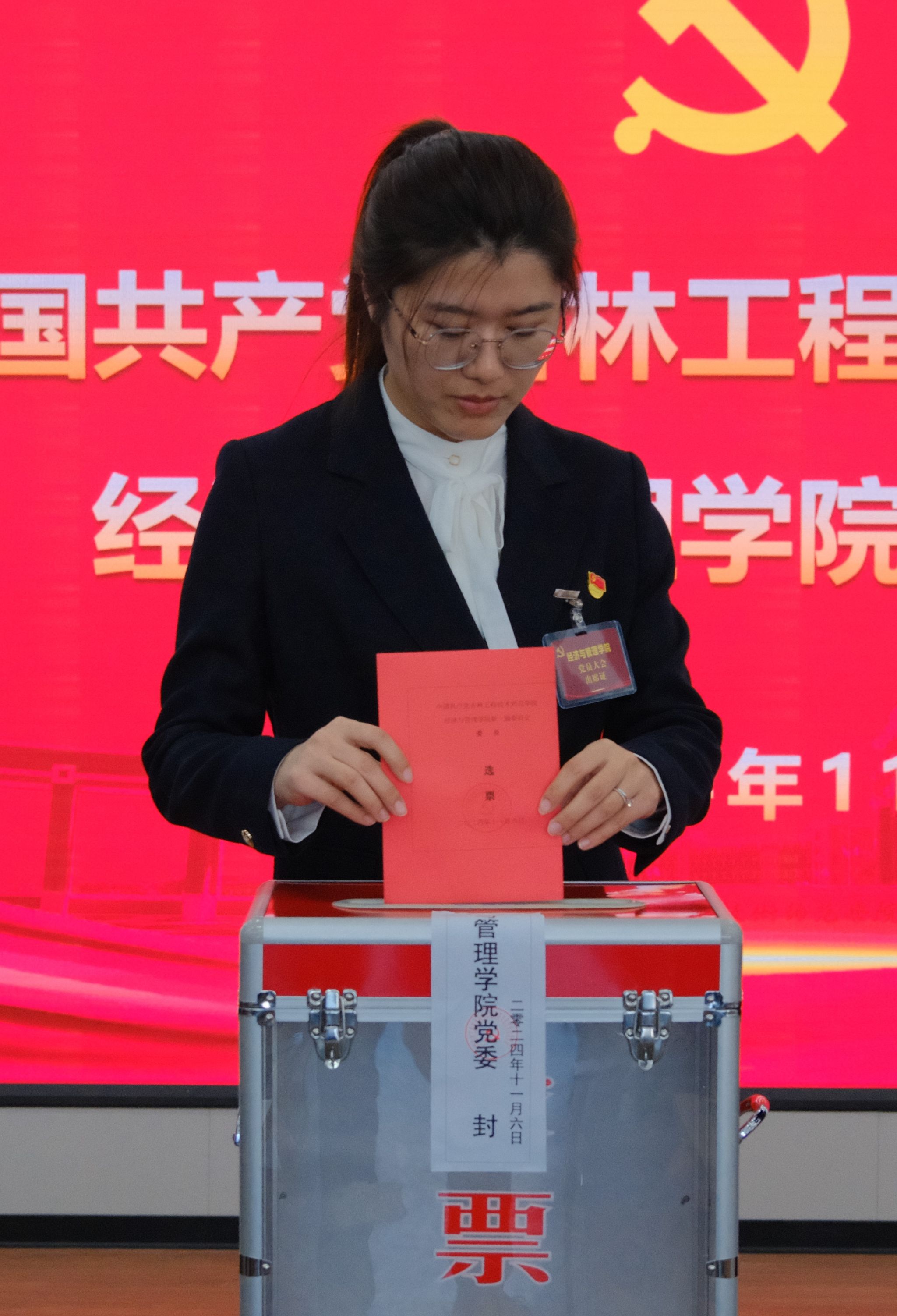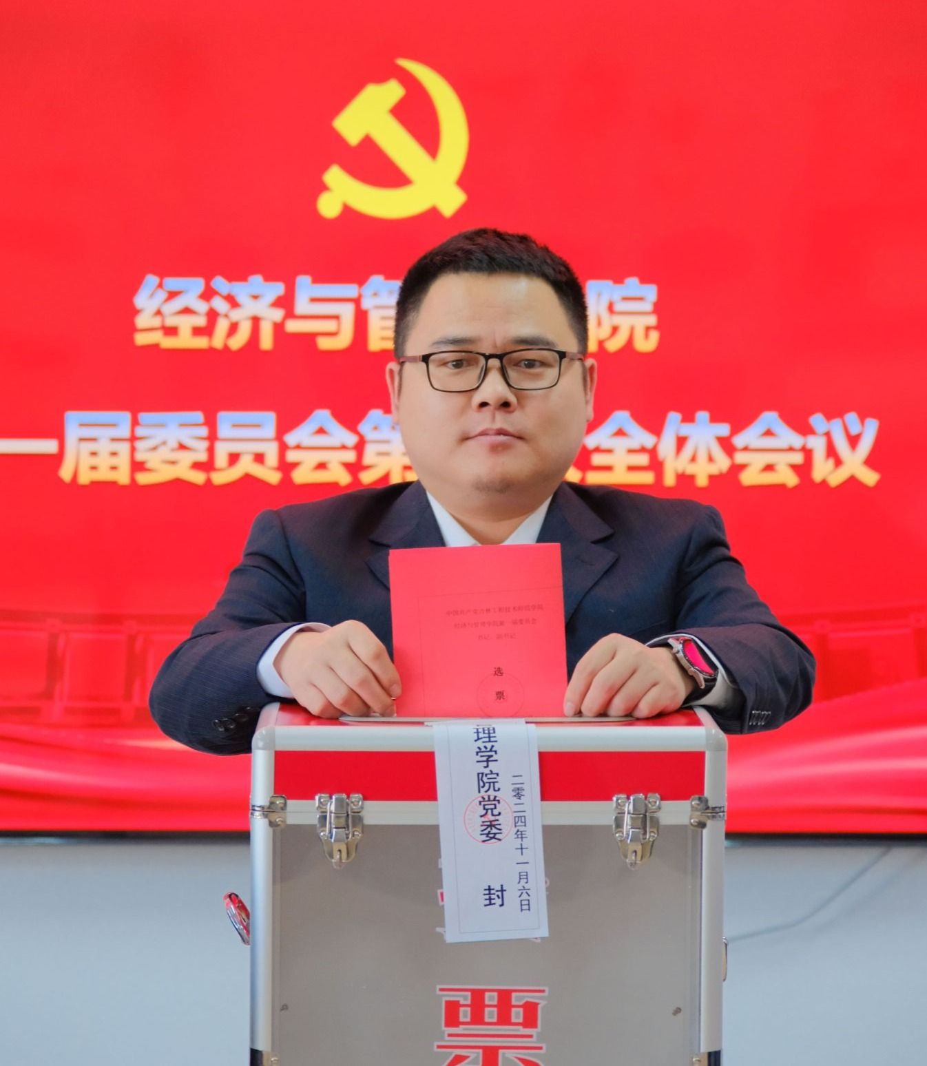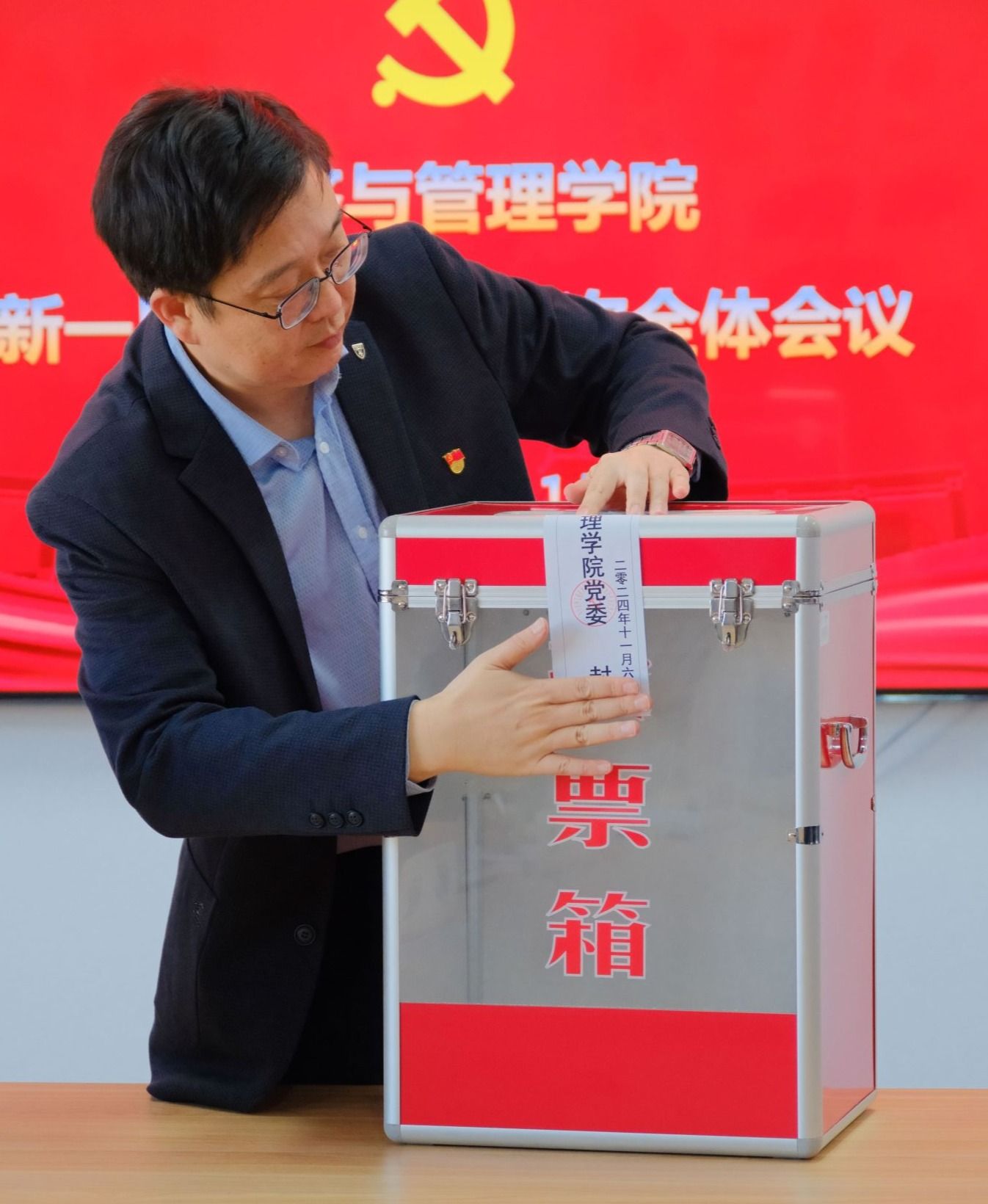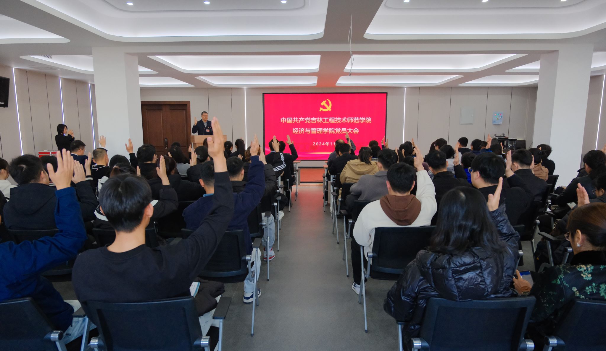 2024年11月6日,yl88858永利集团换届选举党员大会在凯旋校区第一教学楼三楼多功能厅召开,学院领导班子及全体师生党员参会,学校党委组织部副部长王宇出席大会,会议由学院党委副书记陈昊宇主持。