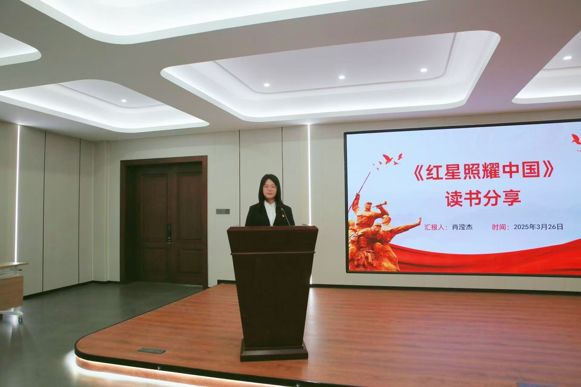 《红星照耀中国》照亮实践路径:肖滢杰结合斯诺的观察视角提出:“书中‘延安精神’与我院‘产教融合’特色异曲同工。党员不仅要做理论‘追光者’,更要成为基层实践的‘造光者’,在实习实训中践行服务宗旨。”