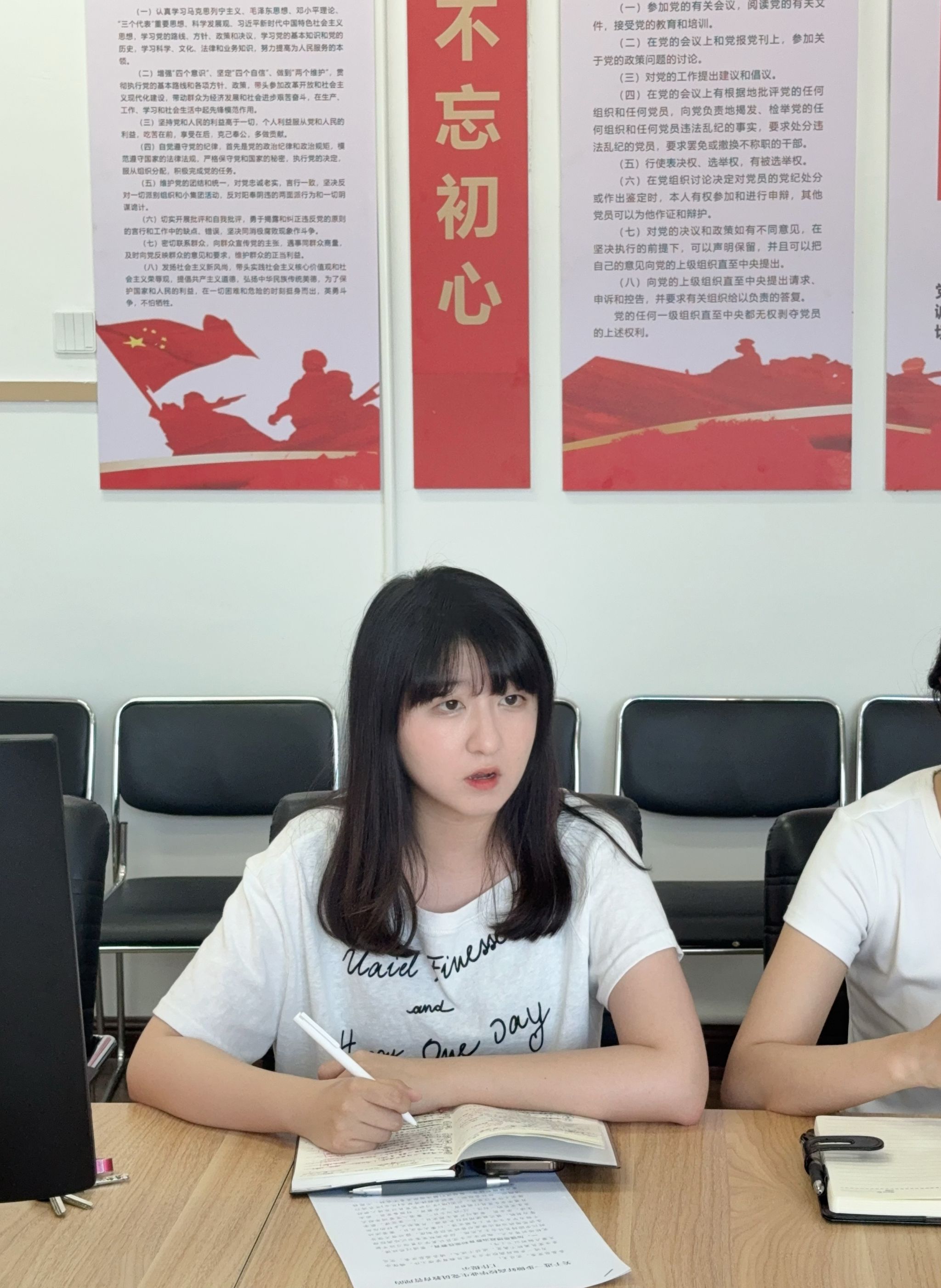 刘雨欣老师也对毕业生党员们提出了殷切希望。她指出,党员们要不断提升自己的专业素养和综合能力,以过硬的本领为党和人民的事业贡献力量。同时,要积极参与社会公益活动,勇于担当社会责任,传递正能量。党员们要以强烈的责任感和使命感,用自己的实际行动诠释党员的初心和使命,为社会的发展和进步贡献自己的力量。