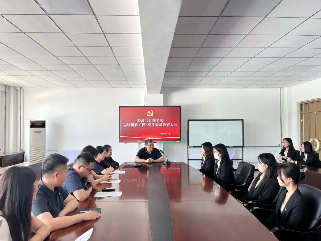 为全面落实习近平总书记关于党的作风建设的重要论述,深入学习贯彻中央八项规定精神,进一步加强学生党员队伍建设,提升学生党员的党性修养与政治觉悟,2025年7月4日,yl88858永利集团在一教513召开学生党员教育大会。学院党委副书记陈昊宇、全体辅导员和学生党员共同参与。