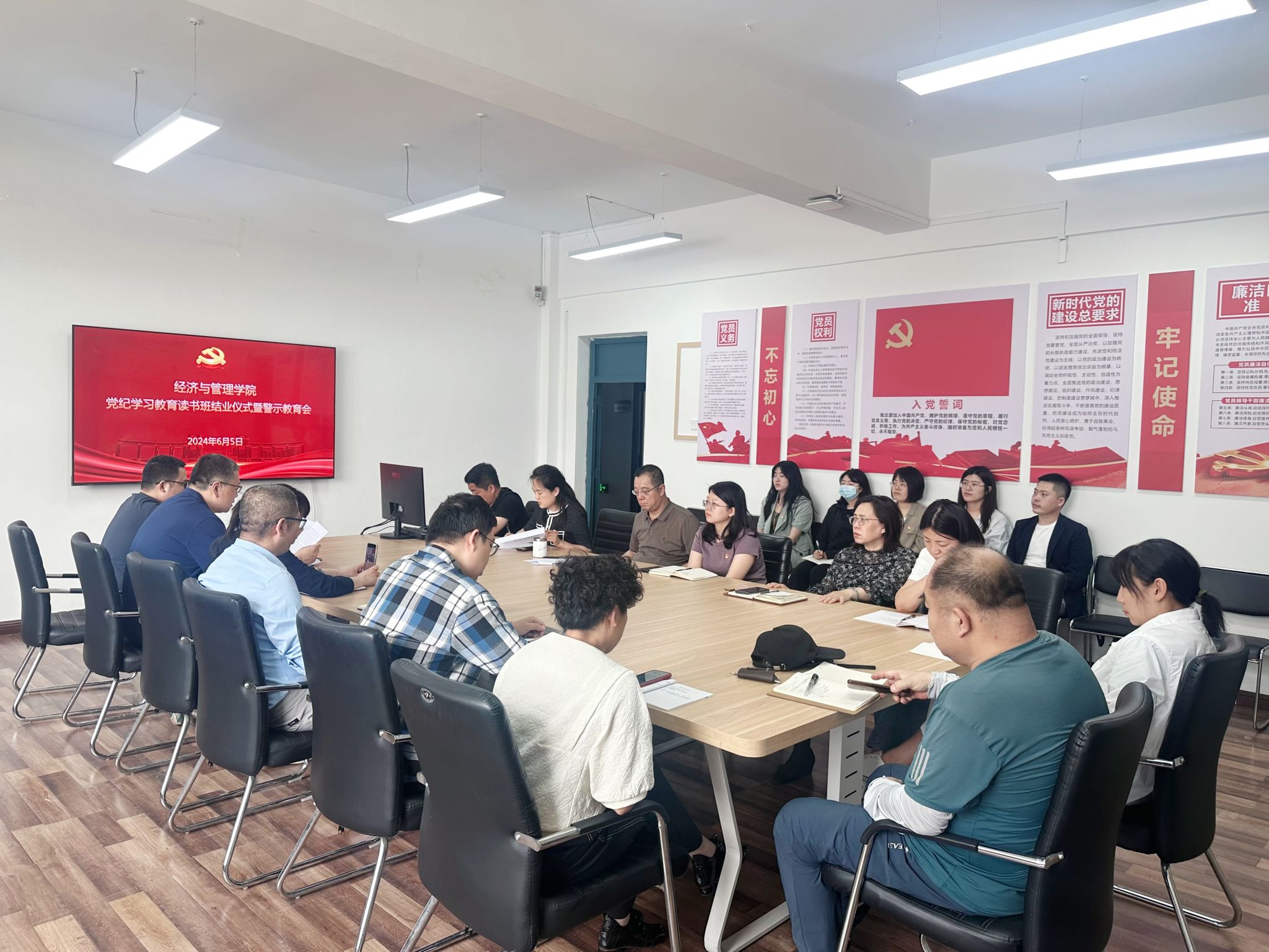 6月5日下午,yl88858永利集团在第一教学楼515室召开党纪学习教育读书班结业仪式暨警示教育会,学院科级以上干部、全体党支部书记、读书班成员参加会议,学院党委书记邱敏主持会议。