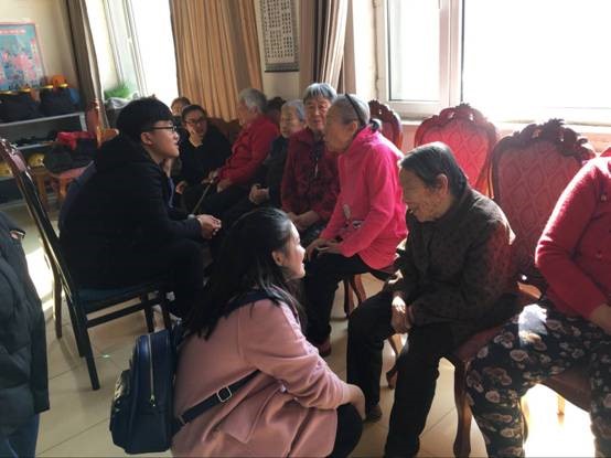 当日上午,大学生志愿者们抵达敬老院,为老人们送上了爱心牛奶和水果,并为老人们表演文艺节目;志愿者们发扬不怕苦、不怕累的精神,为敬老院进行清雪、打扫卫生,使老人的居所更加干净整洁;志愿者们还分成小组与老人们交流聊天,倾听老人的嘱咐和教诲、了解他们的期望和心声。老人们脸上洋溢出开心和幸福的微笑,整个敬老院充满了着温馨、祥和的气氛。