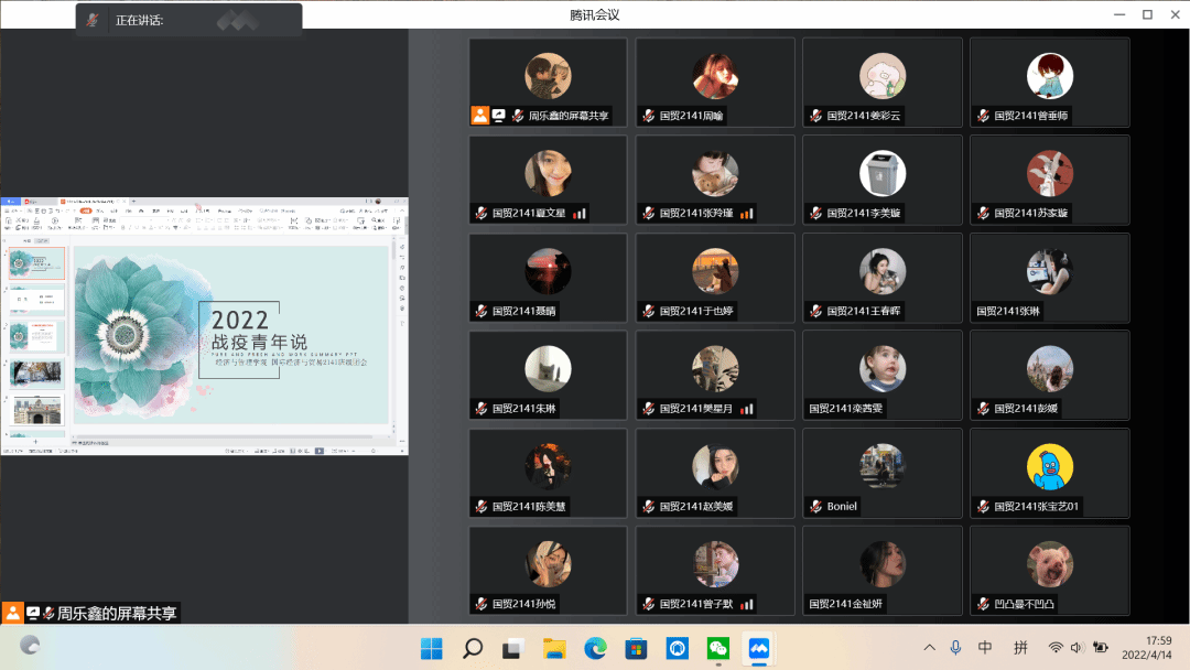 通过本次团会学习了解疫情防控知识,合理安排自己的学习和生活,积极配合学校疫情防控工作,共同携起手来,行动起来,齐心协力,攻克难关,打赢疫情防控阻击战。上下一心,众志成城,共克时艰,静待春暖花开!