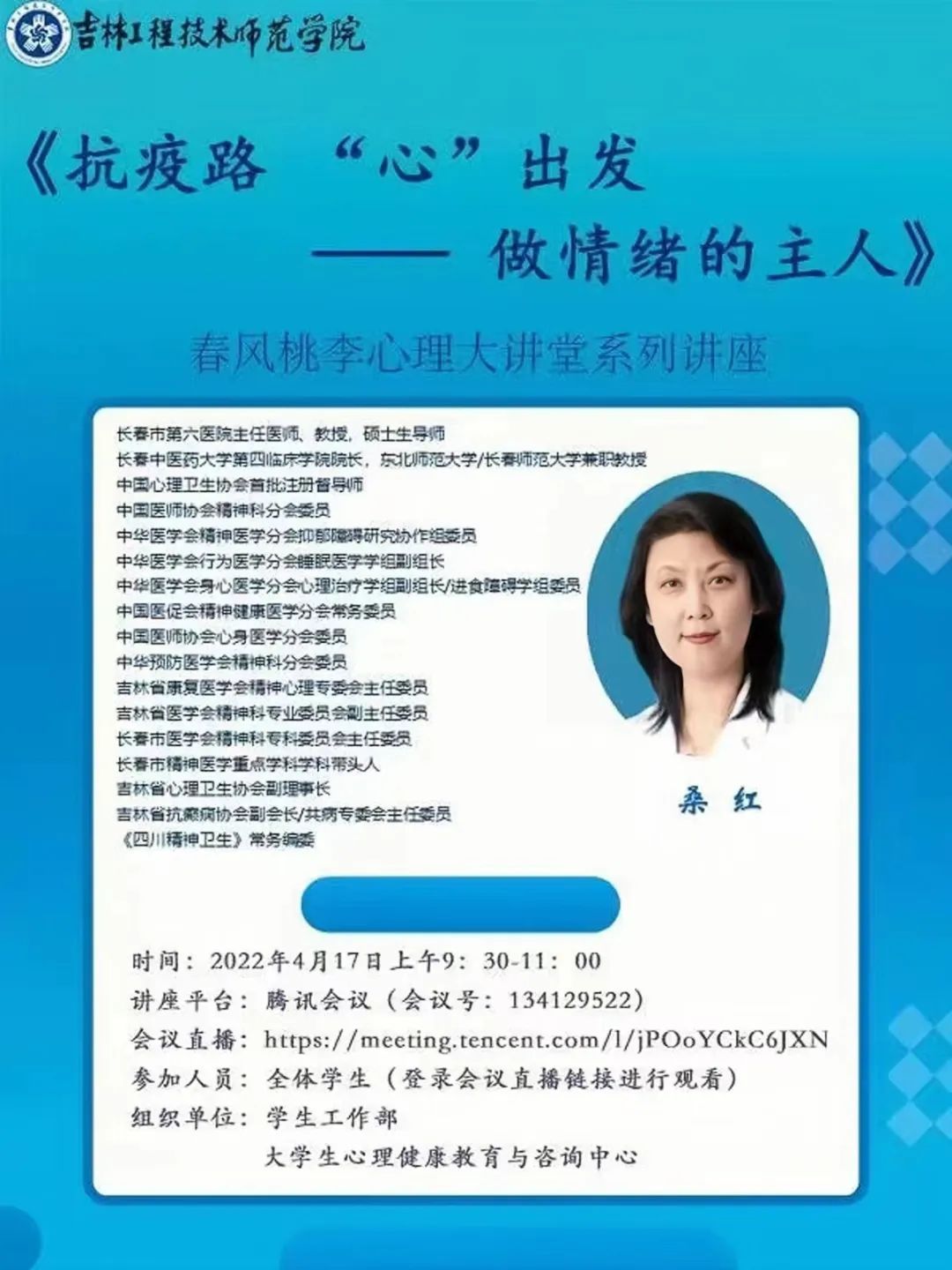 今天上午,学校组织了由桑红医师主讲的心理健康讲座,我收获了很多。