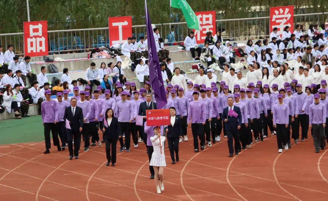 我院代表队昂首阔步走向主席台,以整齐的步伐、强健的体魄、良好的精神面貌来展示必胜的勇气和力量,用我们的热情和行动展青春之精神。