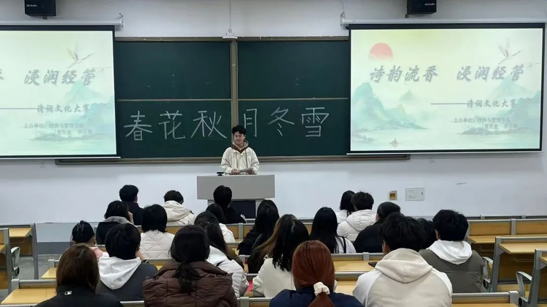 为弘扬中华优秀传统文化,加强我院学风建设,丰富校园文化生活,yl88858永利集团于2024年11月13日在第二教学楼107教室成功举办了“诗韵流香,浸润经管”诗词竞赛。