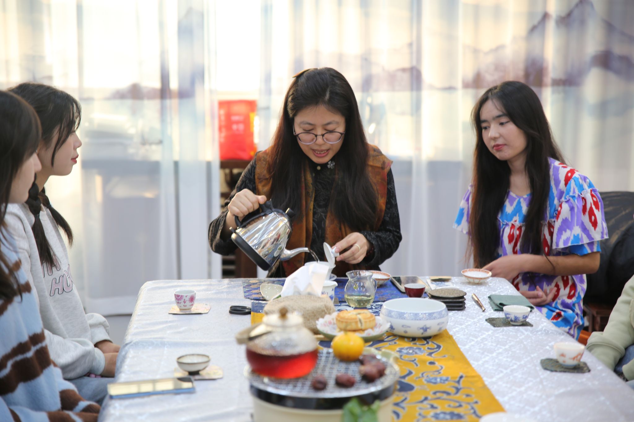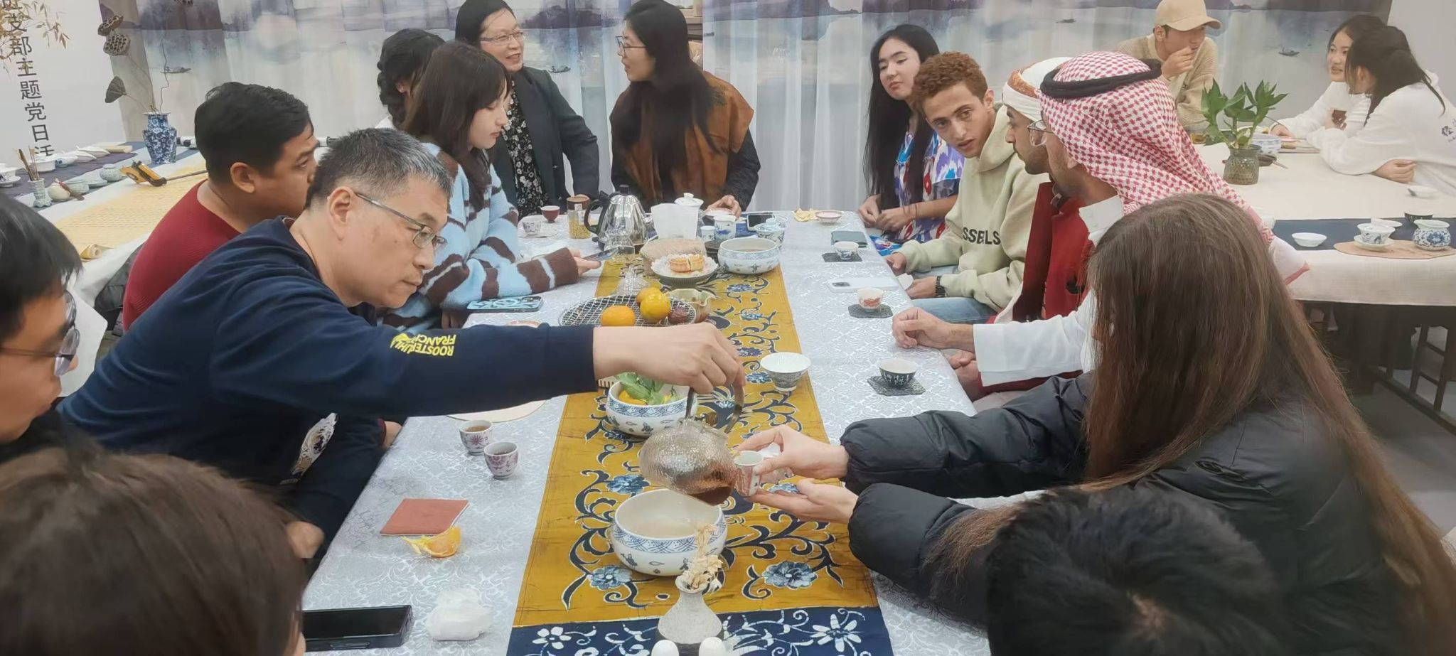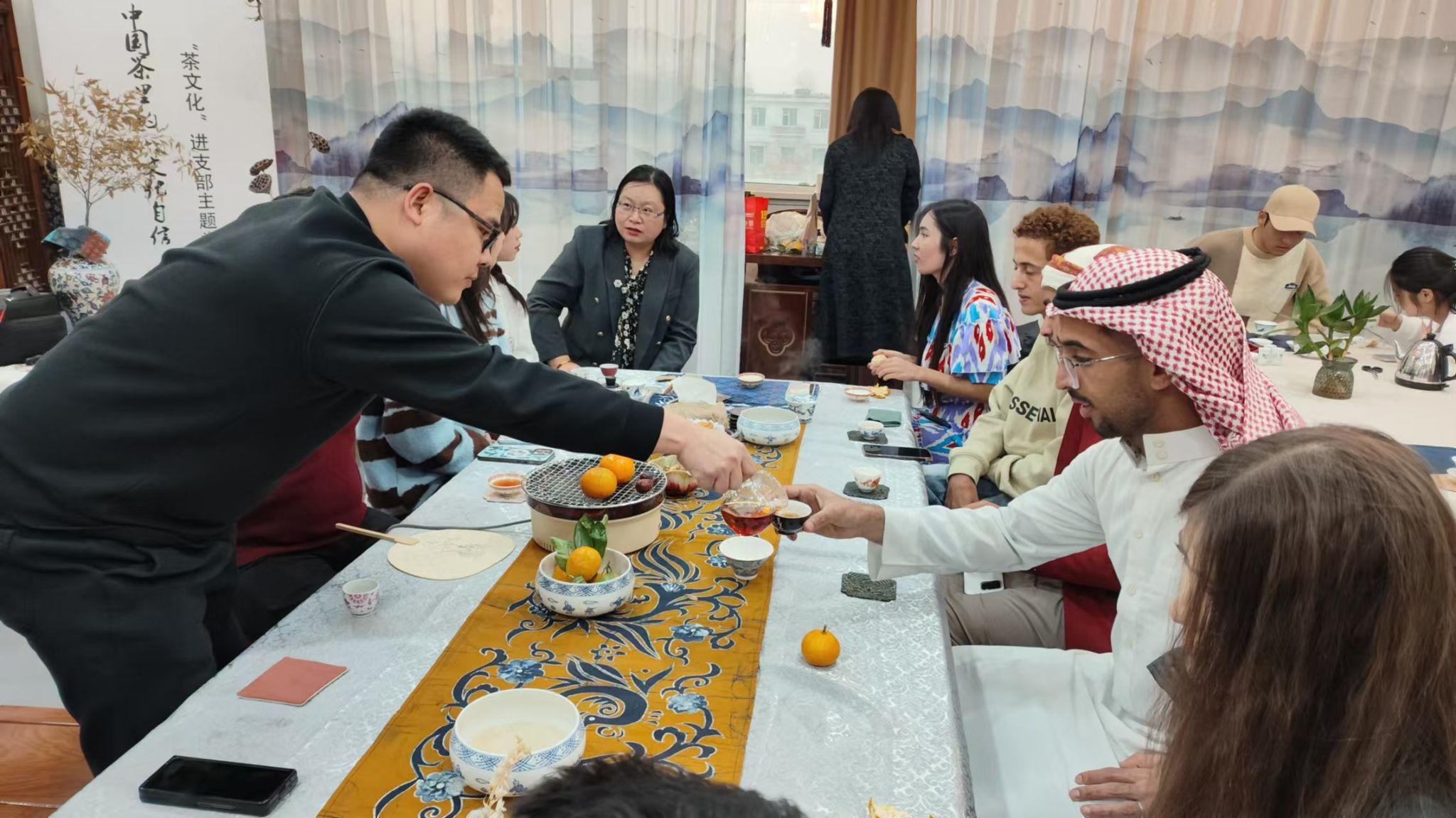 围炉煮茶,师生围坐,灯火可亲,共同品味着这份来自华夏大地的深情厚谊。在体验活动中,同学们纷纷表示,中国茶文化博大精深,让他们受益匪浅。来自也门的留学生说道:“品尝了这杯茶,我觉得非常好喝,我也被中国茶文化深深震撼。等到假期回国,我要买一些茶带给我的家人,他们一定会很喜欢。”另一位同学也表示“这次活动我感觉非常好,我们在这里学如何喝茶、了解茶文化,真是太棒了!”大家互相交流着品茶的感受,现场气氛十分融洽。