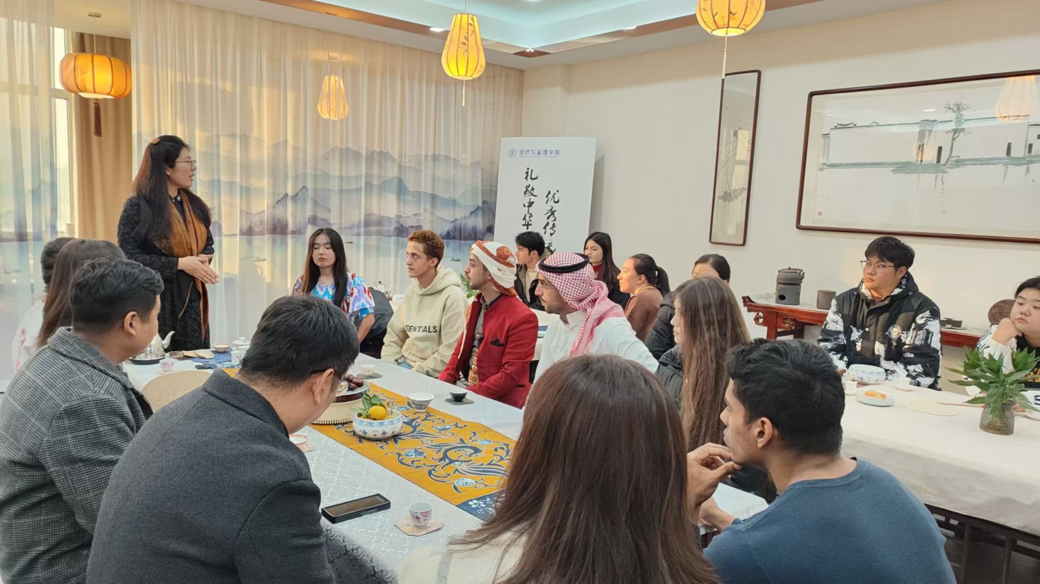 活动以师范技能展示和体验中国传统茶文化为核心,旨在让中外学生通过真实的文化体验,感受中华文化的魅力。旅游管理专业姜春红老师为大家讲解了茶文化的历史渊源、制作工艺、茶道礼仪等内容,并现场展示了优雅的茶艺流程。通过亲身体验,留学生们对中国茶文化有了更深入的了解,表示从中体会到了中华文化的精髓和独特韵味。