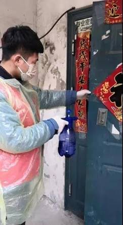 胡嘉征的工作是每天对负责区域的在外人员情况进行登记排查,并且做好24小时值守防疫点。当他换班的时候就仔细地对公共区域杀菌消毒,最大程度维护乡里的平安健康和社会的和谐稳定。