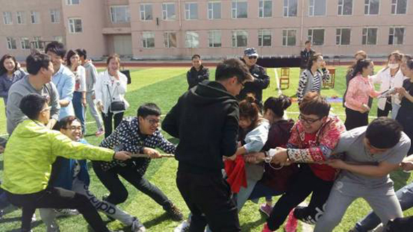 本次趣味运动会共分为拔河、小猫钓鱼、仙人指路、十人十一足等11个项目。首先由舞蹈协会带来了一场火辣的开场舞,紧接着激烈的拔河比赛正式开始。由大一代表队对战大二代表队,大二代表队以三局两胜赢得了这场比赛;接下来大二代表队越战越勇对战大三学生,又一次获得了比赛的成功。尽管天气比较炎热,但丝毫没有削减同学们的热情。