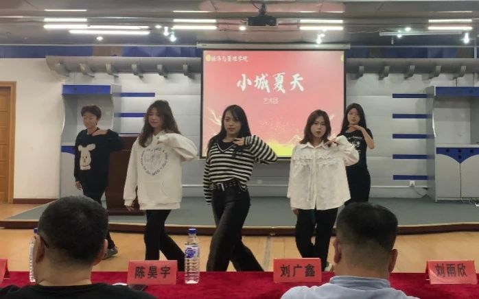 第四项,艺术团节目表演。大会接近尾声,由学院艺术团成员路楠楠等4名同学为在场师生带来舞蹈表演《小城夏天》。