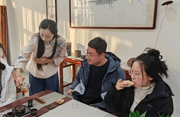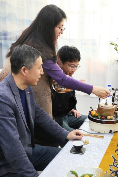 全体学工干部参观学院茶艺室,由旅游管理教研室姜春红老师为大家讲解如何辨茶叶、识茶具,从茶的种类、冲泡技巧、品茶礼仪等,并邀请大家一同品茶。