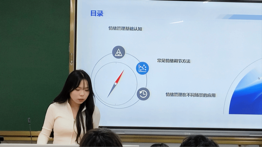 数字经济2442班申雨桐提出情绪的多样面貌并展开讲述了其调节方法,例如自我调节法、运动调节法、社交调节法等。这些宝贵的经验和方法,会成为同学们在学习生活中的有力武器,助力大家在数字世界中保持内心的宁静与强大。