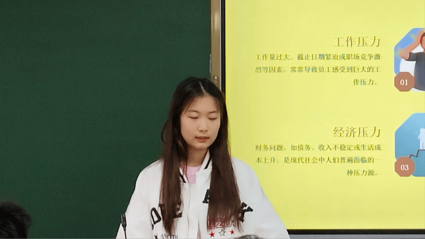 市场营销2441班初可鑫分析了压力的来源及其影响,包括学习任务、升学竞争、自我期望高等多方原因,并为我们分享在日常生活中守护心理健康的秘诀,也让我们掌握了在社交中维护心理健康的有效方法。