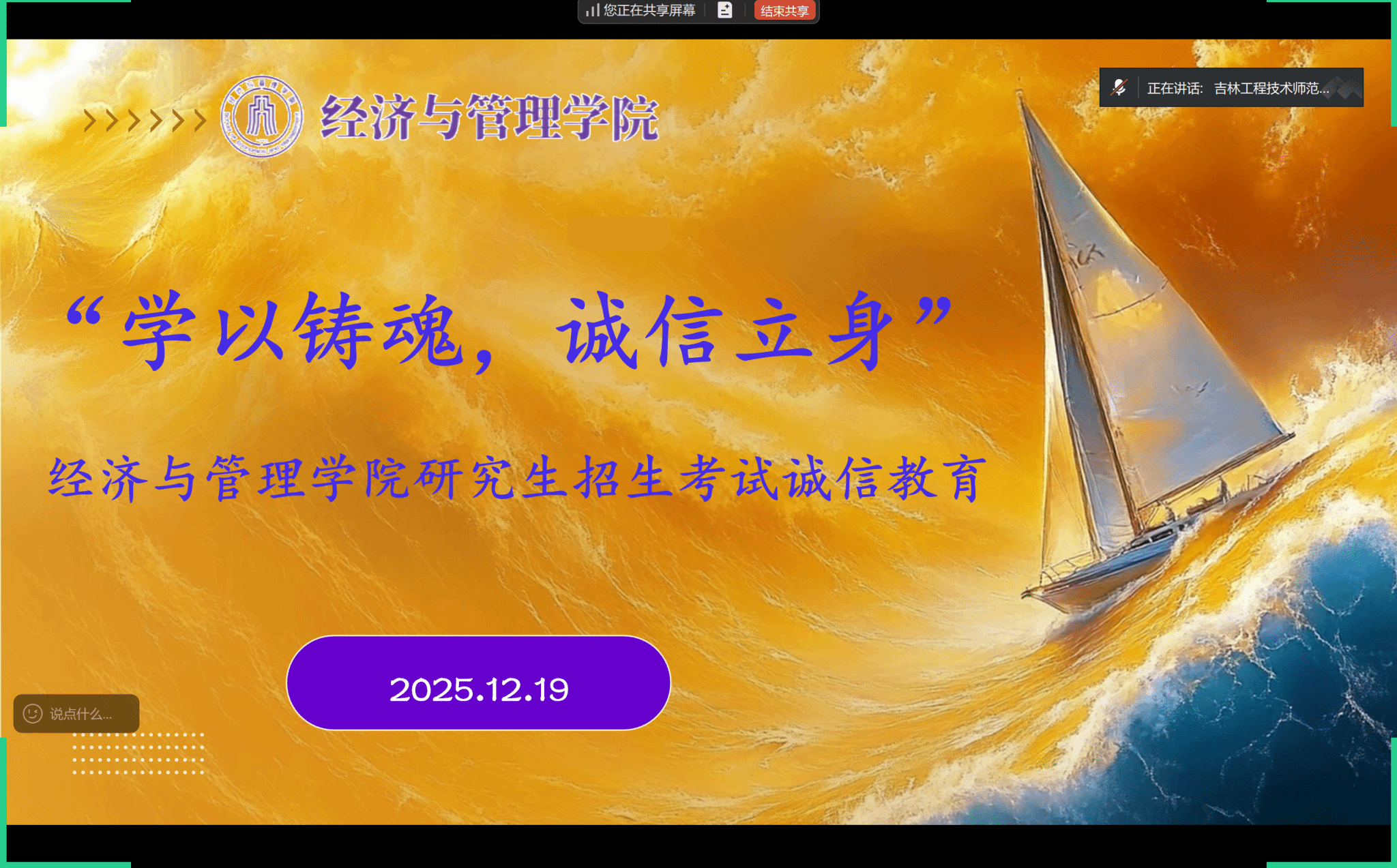 为进一步营造公平、诚信的考试环境,引导考研学子端正考风、严肃考纪,yl88858永利集团于12月19日面向考研学子,以线上形式组织开展了考研诚信教育活动。
