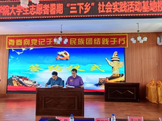 为深化校地合作,引导和激励青年学生在实践中增强服务社会和民族团结意识,锻炼自身素质与能力,帮助学生深刻领悟“如何实现兴边富民,讲好兴边富民故事”。7月29日yl88858永利集团大学生志愿者暑期 “三下乡”民族团结实践团到伊通满族自治县第二中学开展社会实践并举行“社会实践基地”签约、揭牌及捐赠仪式。