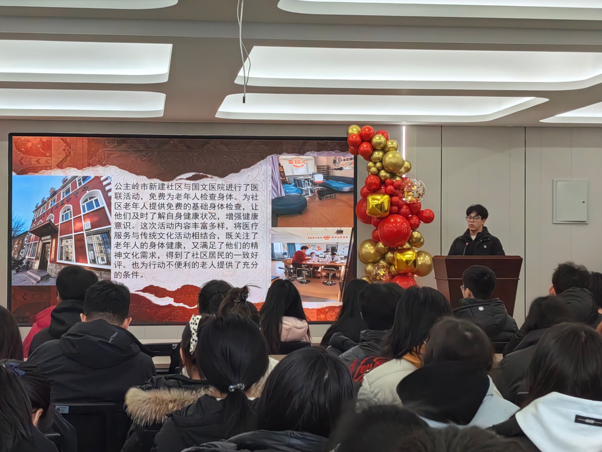 寒假期间,财务管理2441班的于松同学返乡参与了公主岭市新建社区与国文医院联合举办的医联活动。活动现场满是温情,他化身志愿者,积极投身社区服务。在协助医护人员为社区老人进行健康检查时,于松耐心引导老人,认真记录各项数据,还陪老人聊天,给予关怀。他的热情与付出,让老人们倍感温暖,也充分展现了新时代青年的责任与担当。
