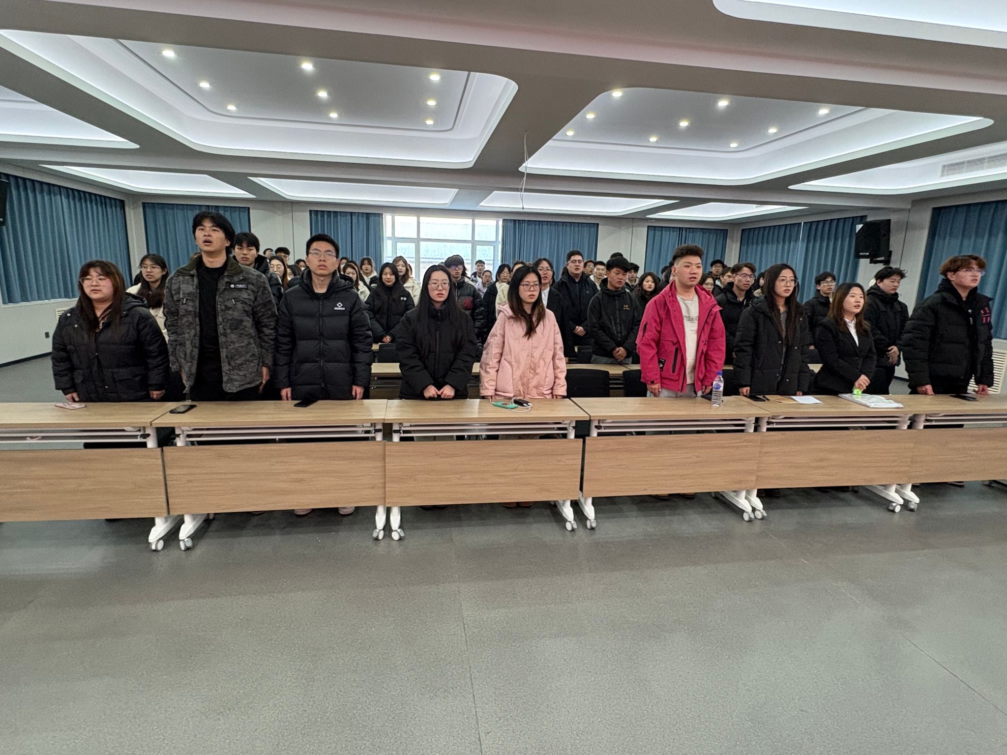 大会在庄严的国歌声中拉开帷幕。全体人员起立,目光坚定,歌声嘹亮,这激昂的旋律如同号角,吹响了他们对社会实践的回顾与总结的序曲。
