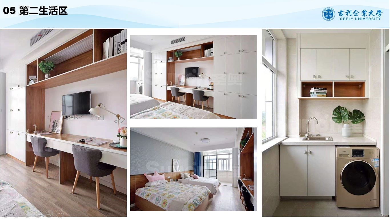 4.单身公寓式宿舍(2人间),配备空调、电视机、洗衣机、热水器、冰箱;