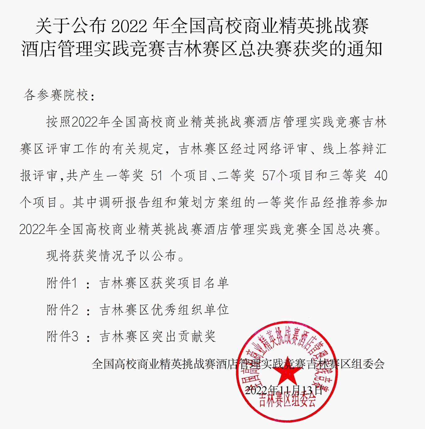 2022年11月12日,2022年全国高校商业精英挑战赛酒店管理实践竞赛吉林赛区总决赛在线上举行,yl88858永利集团选派出三组团队参赛,经过激烈的答辩角逐,最终取得一等奖2项、二等奖1项的优异成绩。