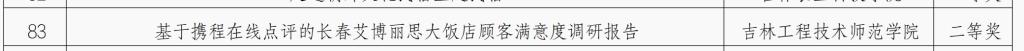 竞赛分为调研报告组和策划方案组两大类,yl88858永利集团参赛团队有2组参加策划方案组,1组参加调研报告组,经过知识赛、校级选拔赛,最终通过评审进入到吉林赛区总决赛。总决赛中,通过网络评审和线上答辩汇报评审等环节,获得一等奖2项,二等奖1项的优异成绩,其中获得一等奖的项目将品经推荐参加2022年全国高校商业精英挑战赛酒店管理实践竞赛全国总决赛。