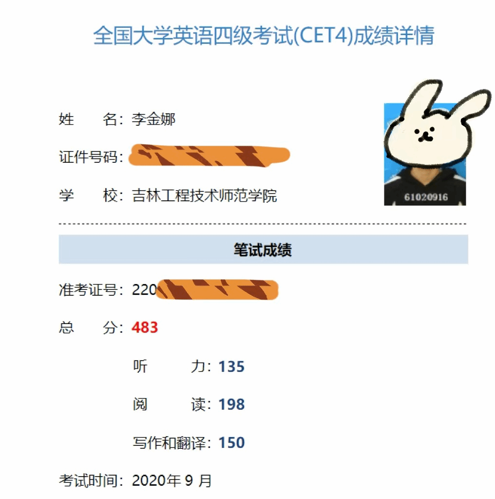证书获得情况:大学英语四级、大学英语六级、校级奖学金