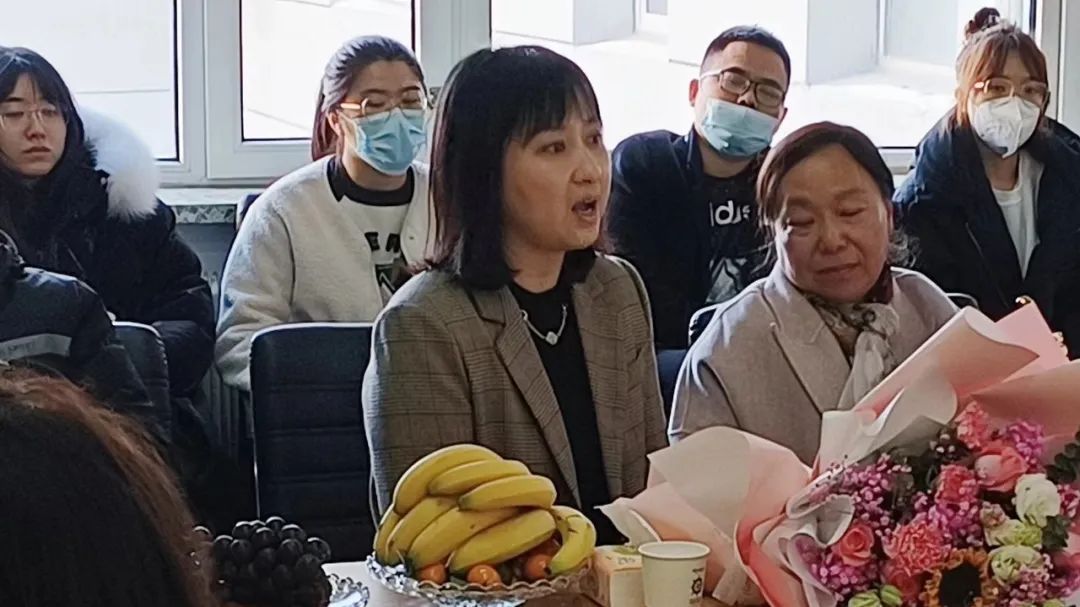 随着歌曲“明天会更好”的旋律响起,教师代表王玥为刘颖老师献上了鲜花,对刘颖老师多年来的兢兢业业和对学生们的辛苦付出表示感谢。