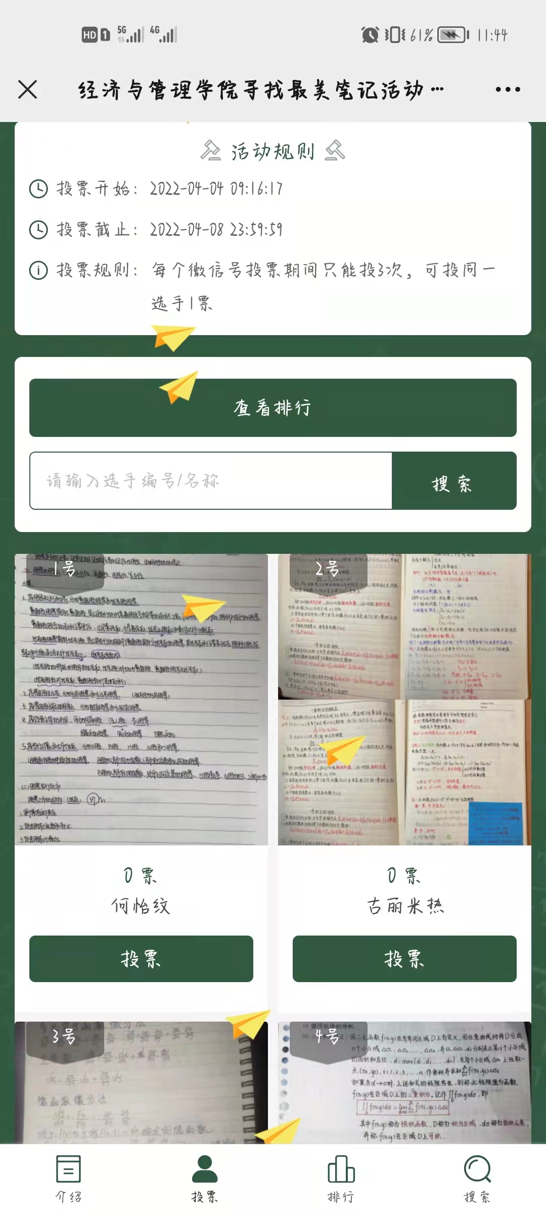 本次“寻找最美笔记”活动分学习、红色笔记两个赛道征集,评选采取教师评审+网上投票形式,其中教师评审占30%,网上投票占70%。各评出一、二、三等奖10名,优秀奖若干,每人每赛道可投3票。投票规则及具体操作如下: