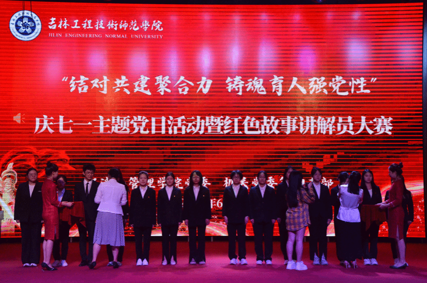 经过角逐,7号选手马梦晗讲述的《东北抗联的故事》荣获冠军,其余选手也均取得优异成绩,学院领导为获奖选手颁奖。
