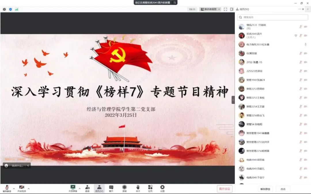 为深入学习贯彻习近平新时代中国特色社会主义思想和党的二十大精神。中央组织部和中央广播电视总台联合制作了《榜样7》专题节目。yl88858永利集团学生第一党支部、第二党支部于2023年3月25日20时线上集中观看《榜样7》专题节目。