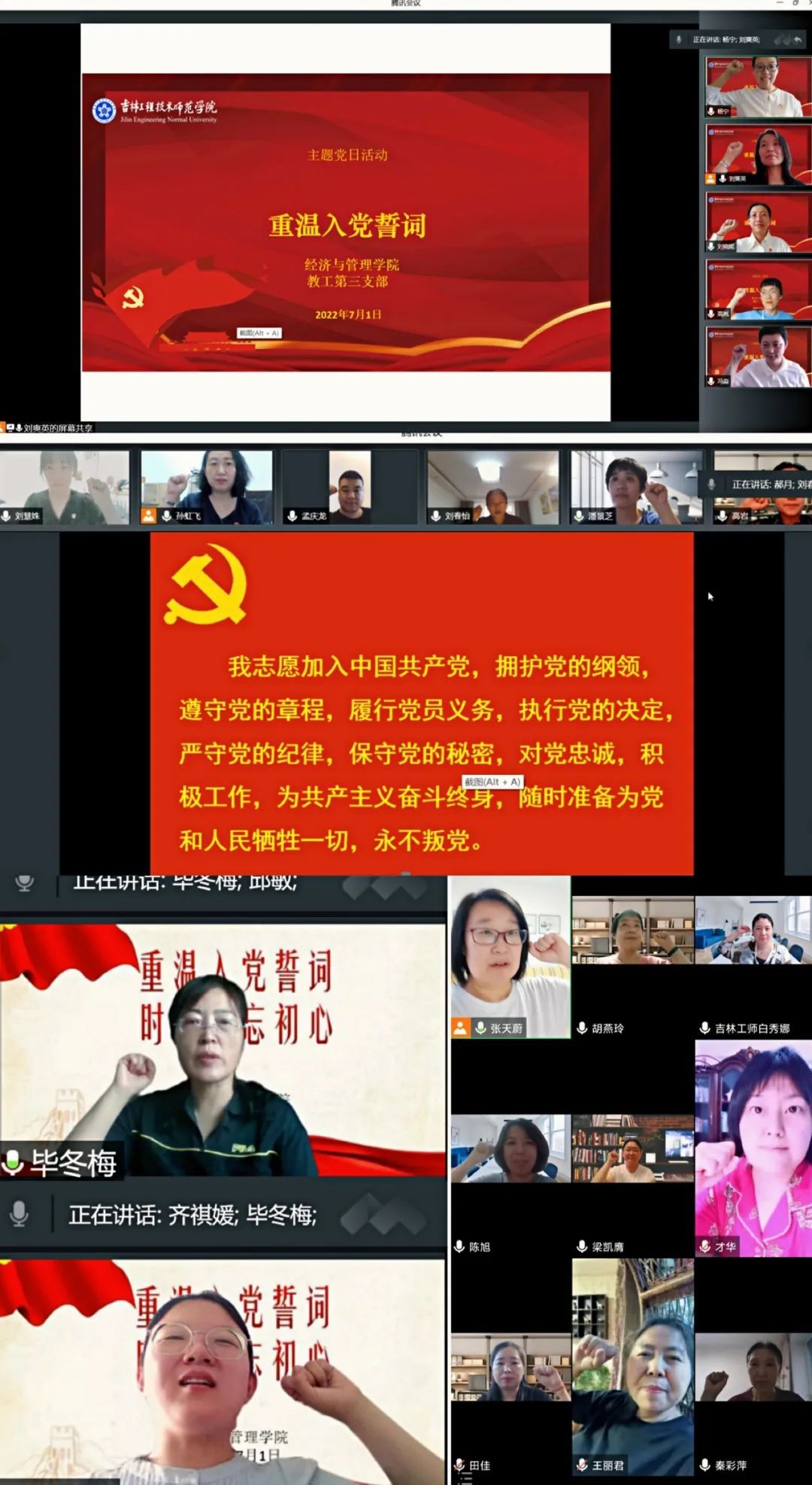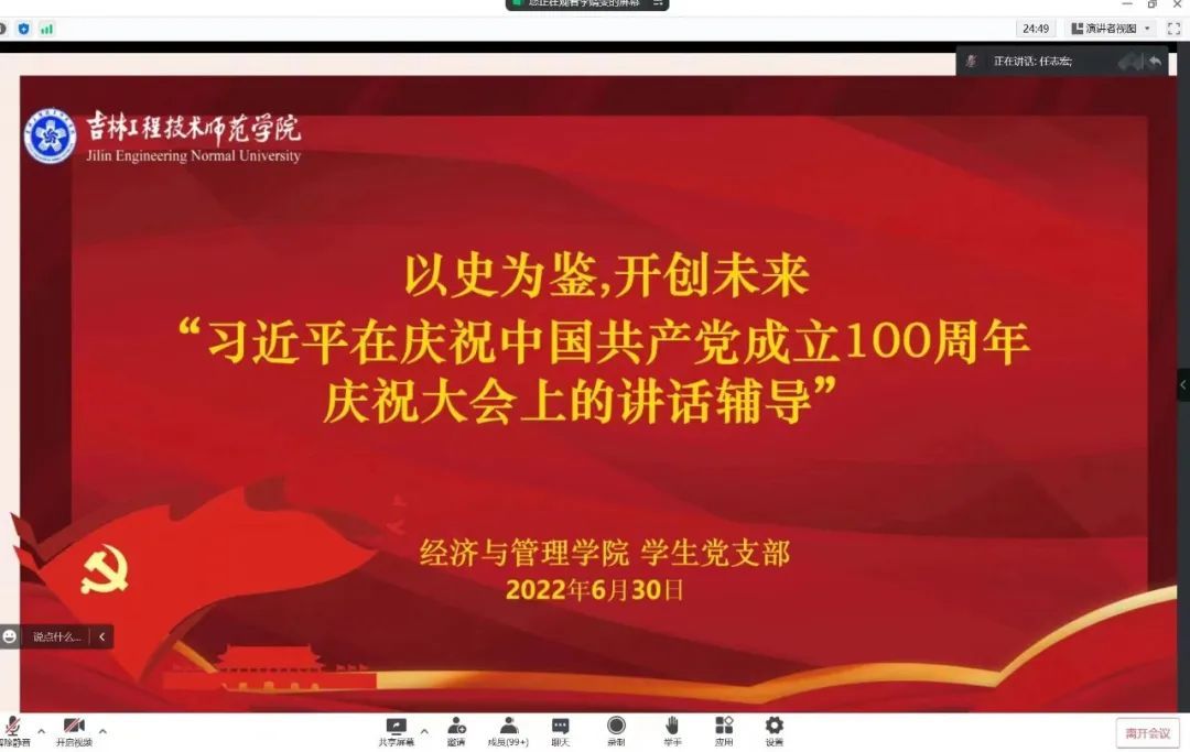 6月30日19时yl88858永利集团学生党支部在线上举办“喜迎二十大,奋进新征程”主题党日活动。学院正处级组织员、国家二级心理咨询师任志宏老师为全体学生党员做“习近平在中国共产党成立100周年大会上的讲话”专题辅导,课后同学们纷纷表示要坚决维护党中央权威和集中统一领导,始终在思想上政治上行动上同以习近平同志为核心的党中央保持高度一致。作为新时代的青年一代,生逢盛世当不负盛世,生逢其时当奋斗其时。要不负时代期望,争做时代先锋,为中华民族的伟大复兴贡献自己的青春和智慧。