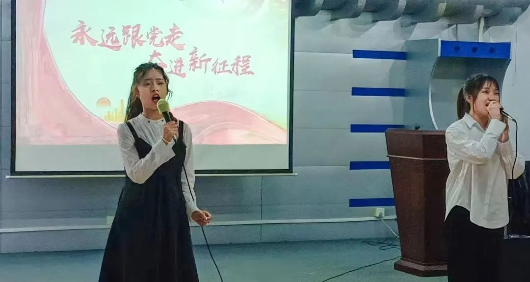 中场休息时,我院学生带来精彩表演,歌声流畅悠扬、青春洋溢,唱出新时代青春活力,表达新时代青年勇往直前的奋进力量。