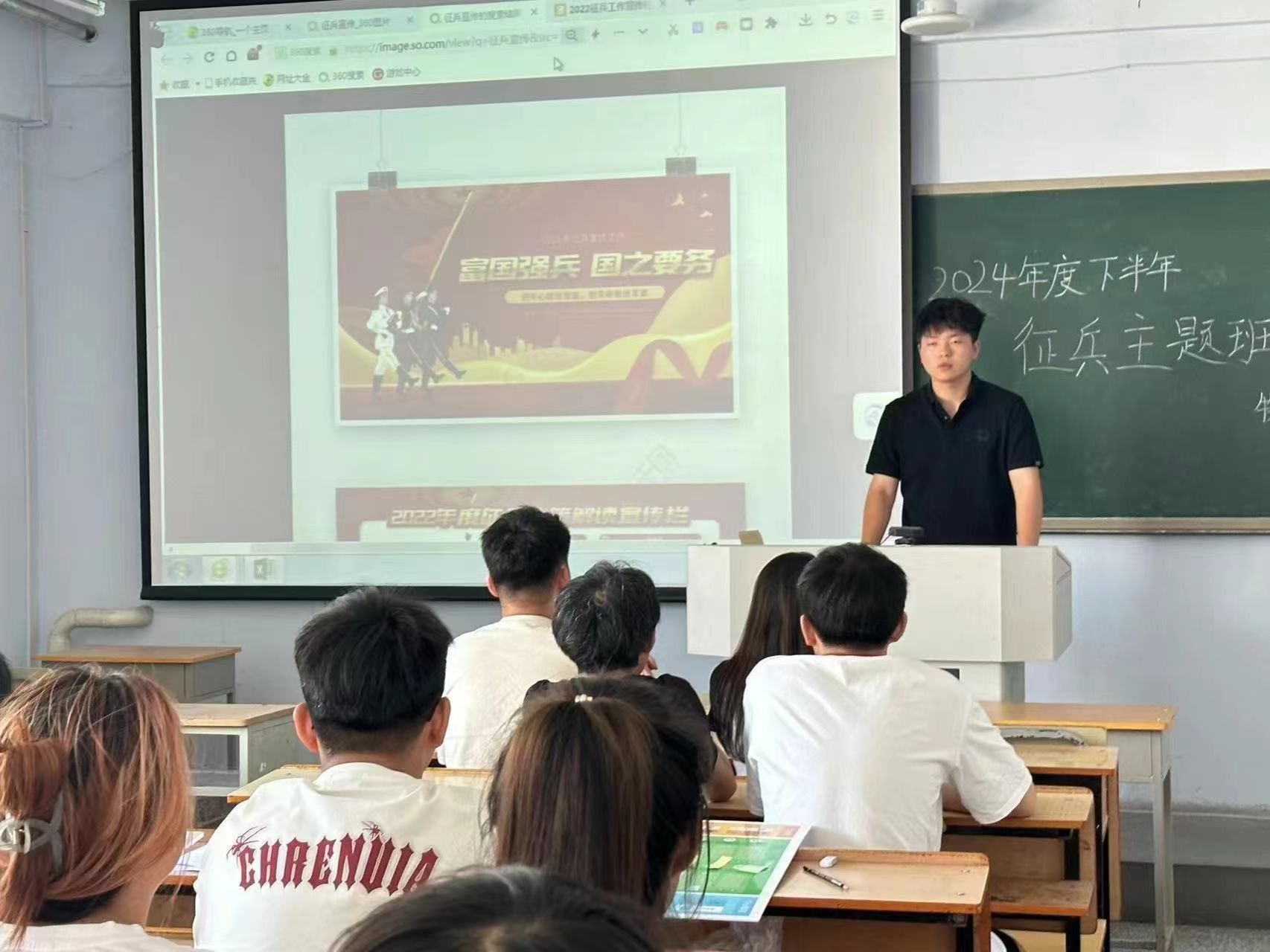 为了确保征兵工作的有效推进,我们成立了专门的征兵工作领导小组,并多次召开专题会议,明确任务、落实责任。我们严格遵循相关政策法规,确保每一项工作都保质保量完成。同时,我们还积极利用各种宣传渠道,如悬挂条幅、张贴海报、播放宣传视频等,营造了浓厚的征兵氛围,让每一位同学都能感受到军旅的召唤。在这场宣传月活动中,我院大一至大四的各个班级纷纷在班级群内发布征兵宣传海报,让征兵信息触手可及。此外,我们还特别为未返校的毕业班学生开设了线上宣讲通道,通过播放征兵宣传片和退伍大学生的分享,让他们也能参与到这场宣传中来。